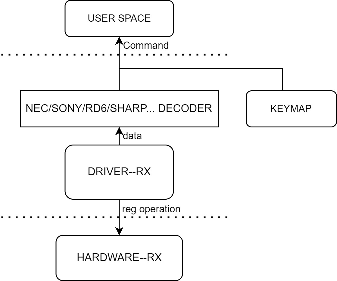 在 K1 平台中外接红外接收头(解调器)收到解调后的电信号在驱动和内核IR框架中进行解码并上报事件。