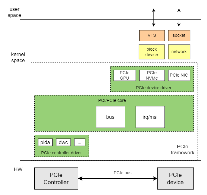 PCIe(Peripheral Component Interconnect Express) 是一种高速串行计算机扩展总线标准。采用高速串行点对点双通道高带宽传输,所连接设备独享通道带宽。