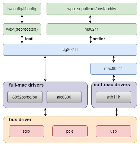 - WIFI驱动: WIFI厂商提供,主要实现WIFI功能。