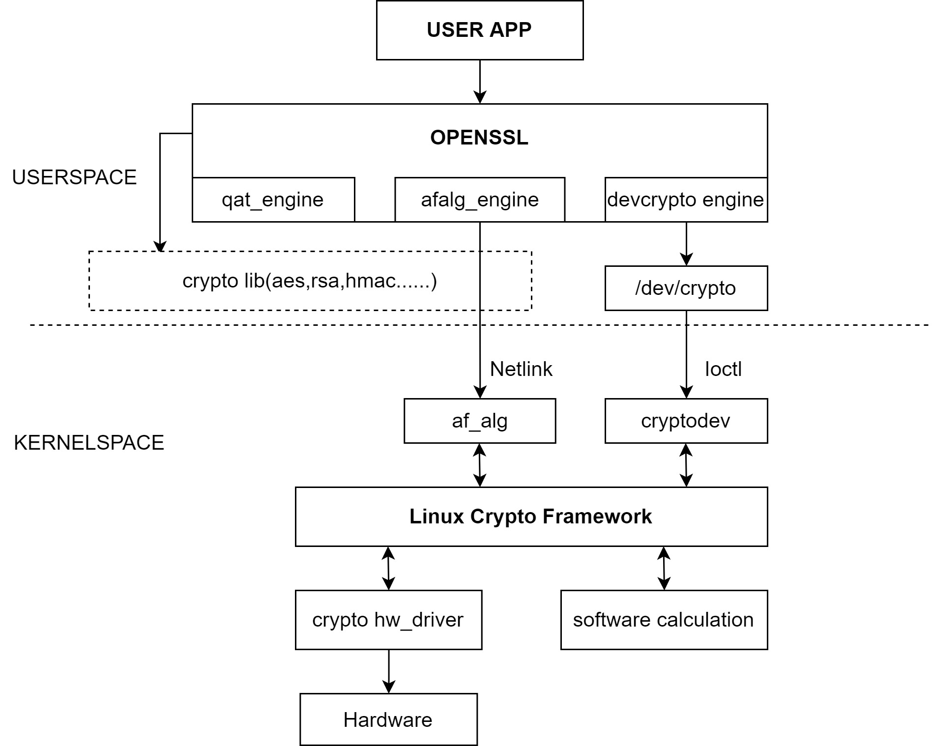 The kernel framework layer for crypto is implemented under the kernel's crypto path, which will not be elaborated here.
